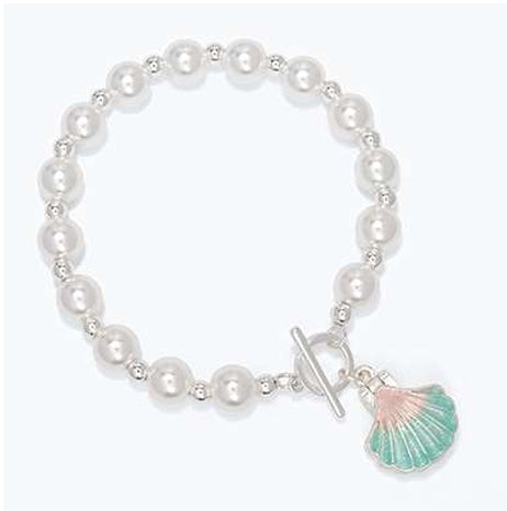 Pearls With Mint And Pink Shell Bracelet