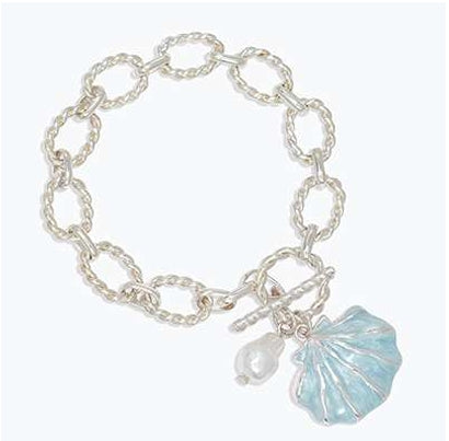 Silver Chain With Blue Shell Bracelet