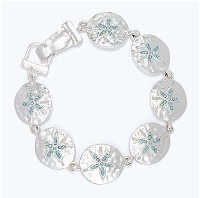 Silver Sand Dollar With Aqua Crystals Bracelet