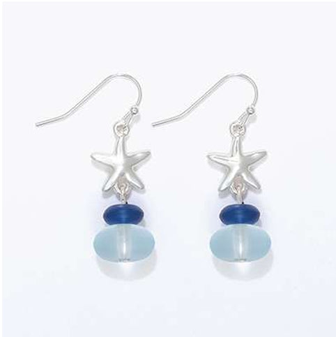Starfish With Blue Seaglass Earrings