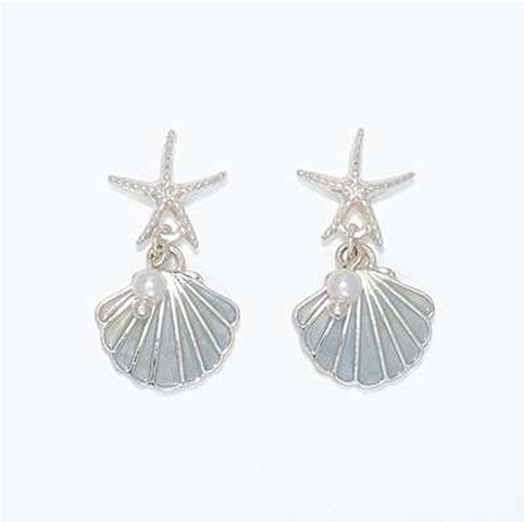 Starfish + Scallop With Pearl Earrings