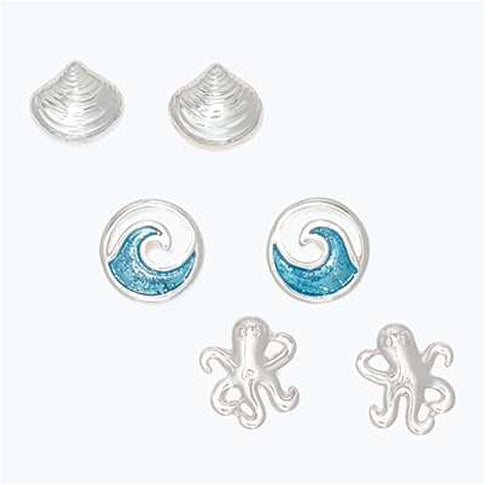 Silver Sea Life And Wave Trio Earrings