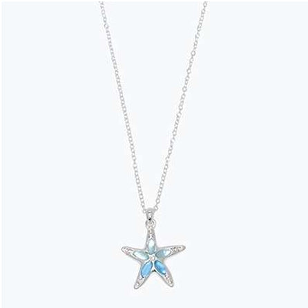 Silver Starfish With Blues And Crystals Necklace