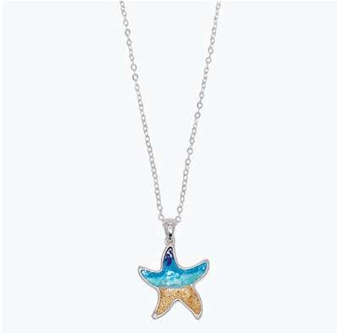 Silver Starfish With Beach Scene Necklace