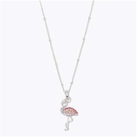 Silver Flamingo With Pink Crystal Necklace