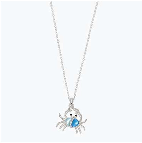 Silver Crab With Blue Crystals Necklace