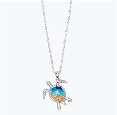Silver Turtle With Beach Scene Necklace