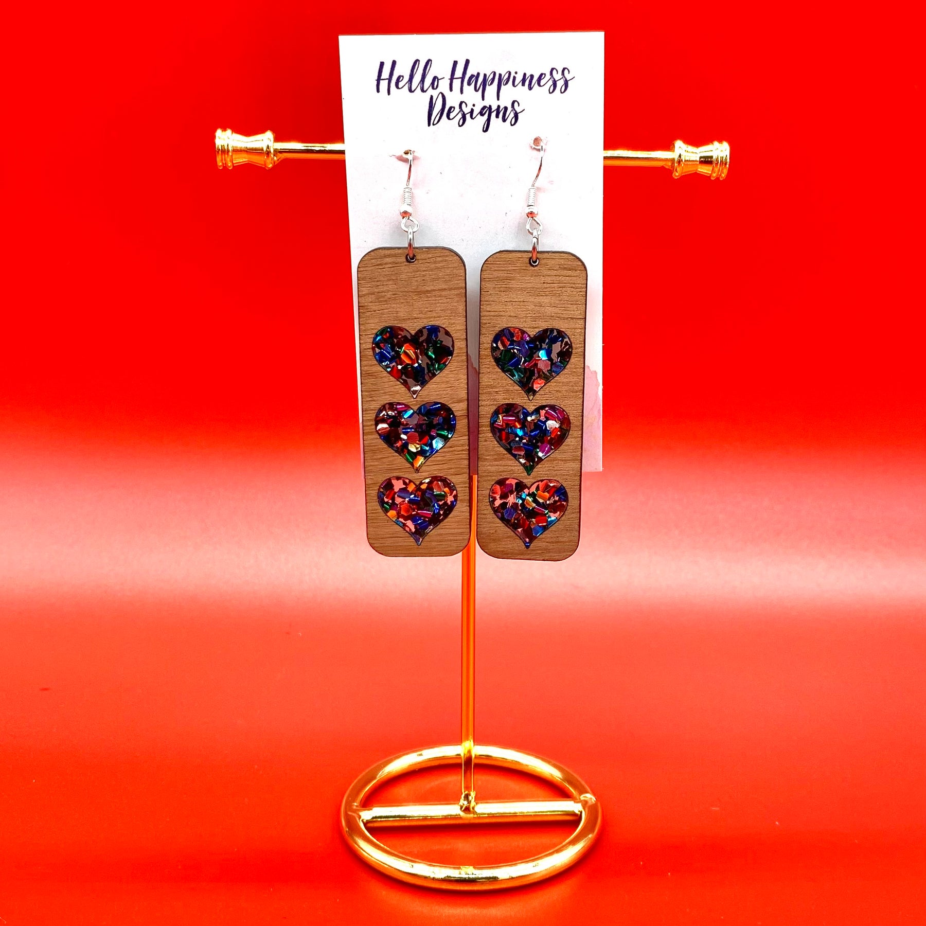 We are absolutely so in love with this new earring collection. Hand crafted out of acrylic and wood, these studs and dangles are a must!! Made in the USA!