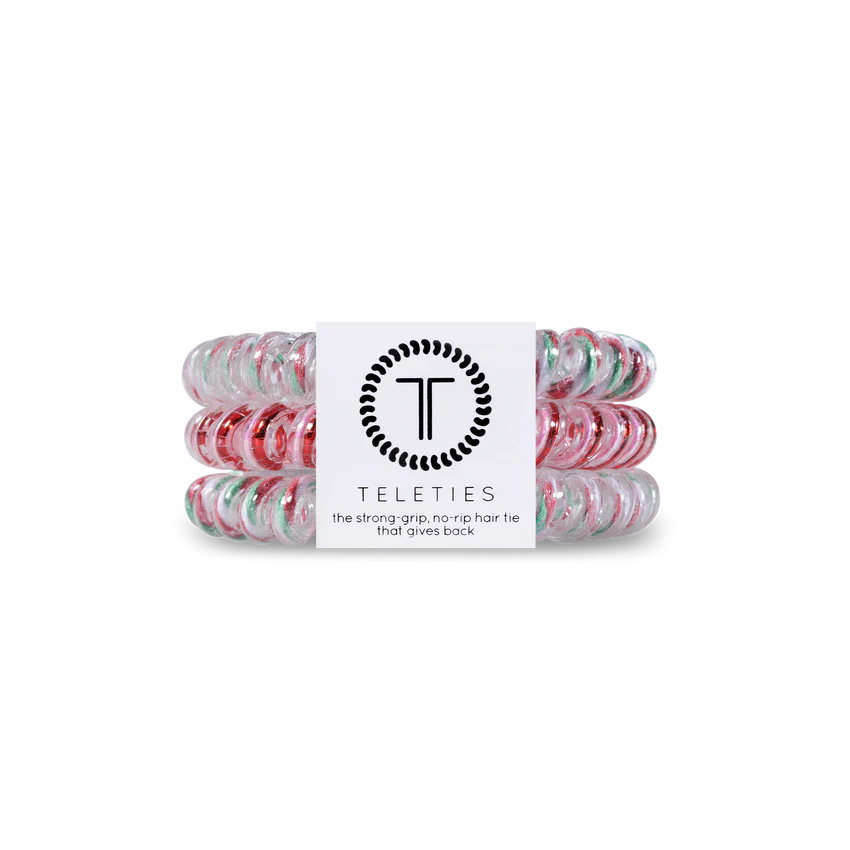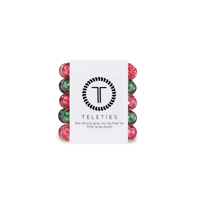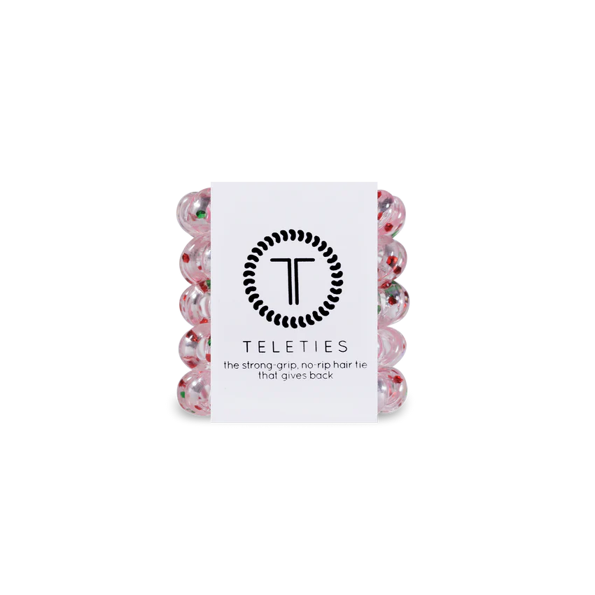 Looking for holiday hair that “sleighs?” You’re in luck! The new TELETIES holiday hair clips and hair ties are here! Wrap up your hair in wrapping-paper prints, or sparkle your style with a wonderland of snowflakes. Let your style sing this holiday with TELETIES!