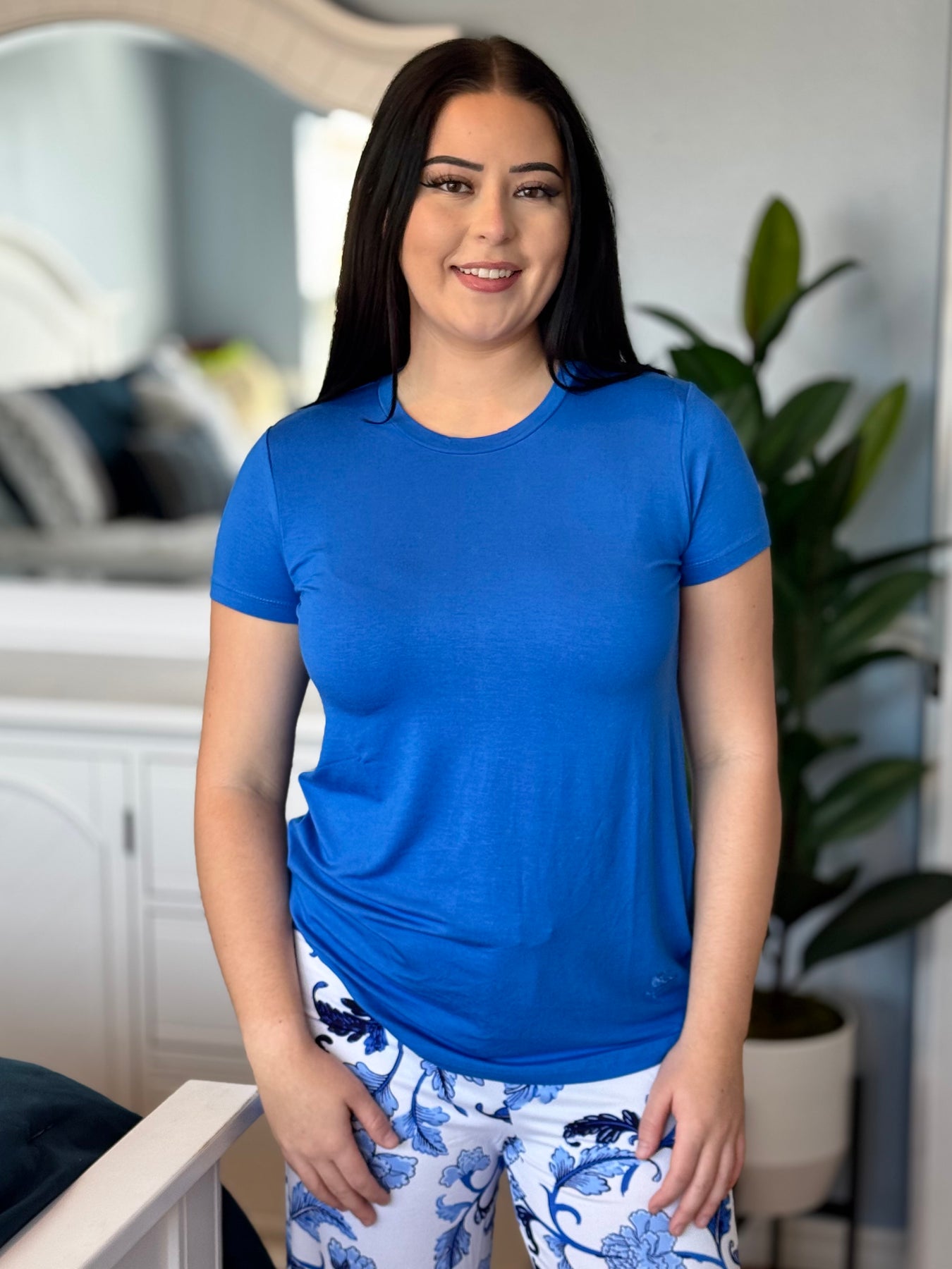 Sleepwear Tops By Amanda Blu - True Blue - Crew Neck