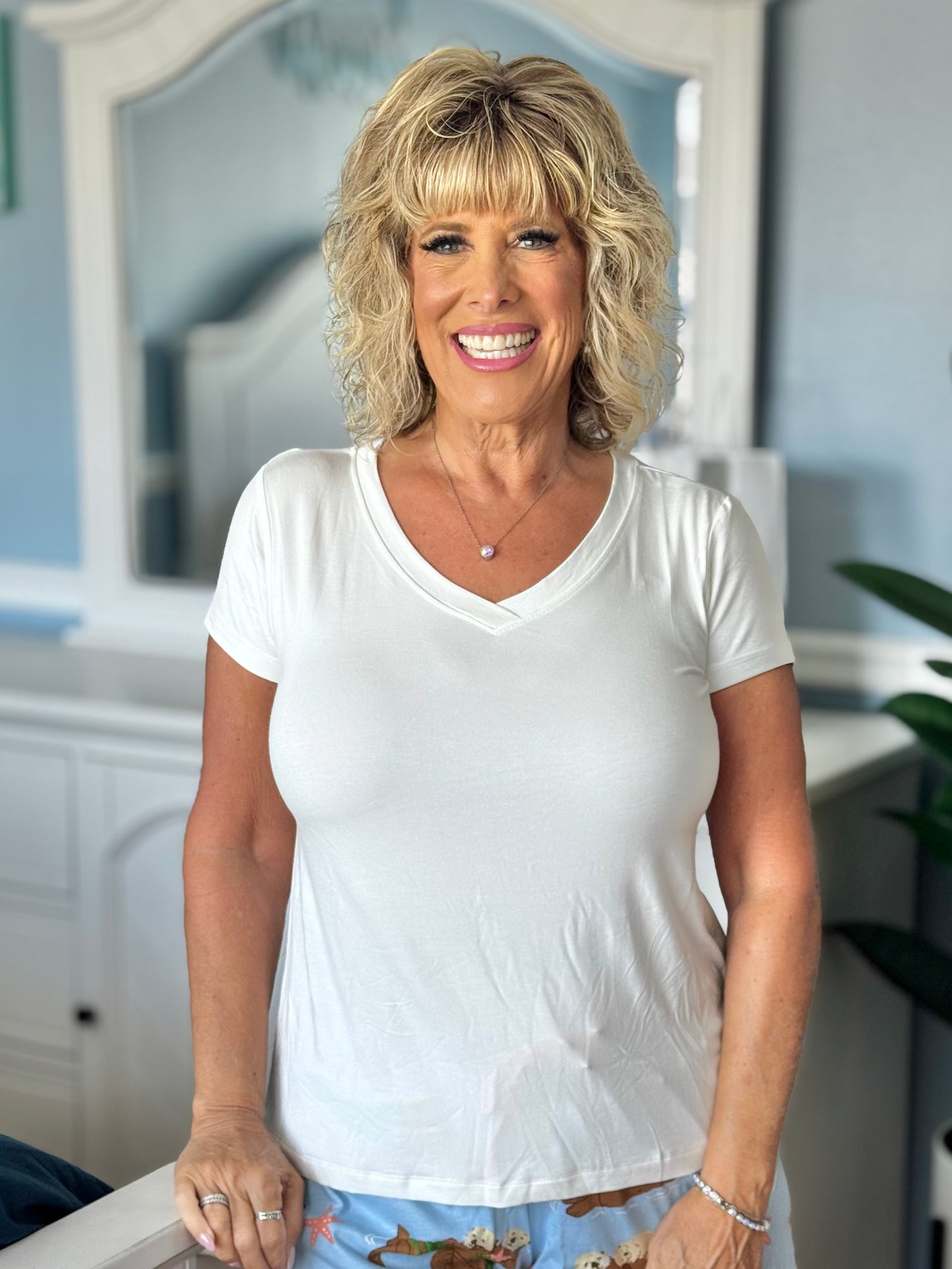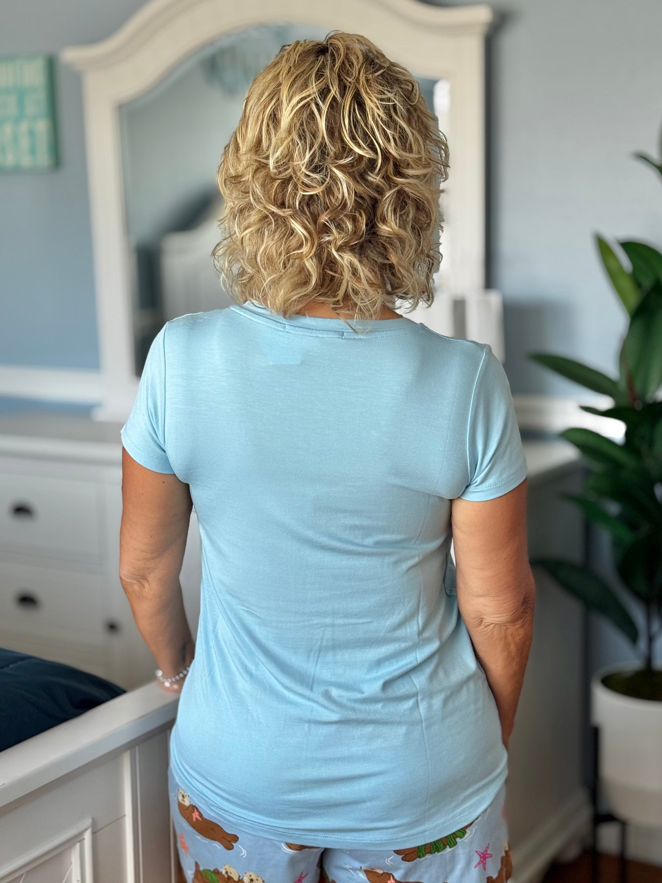 Sleepwear Tops By Amanda Blu - Milky Blue - V-Neck