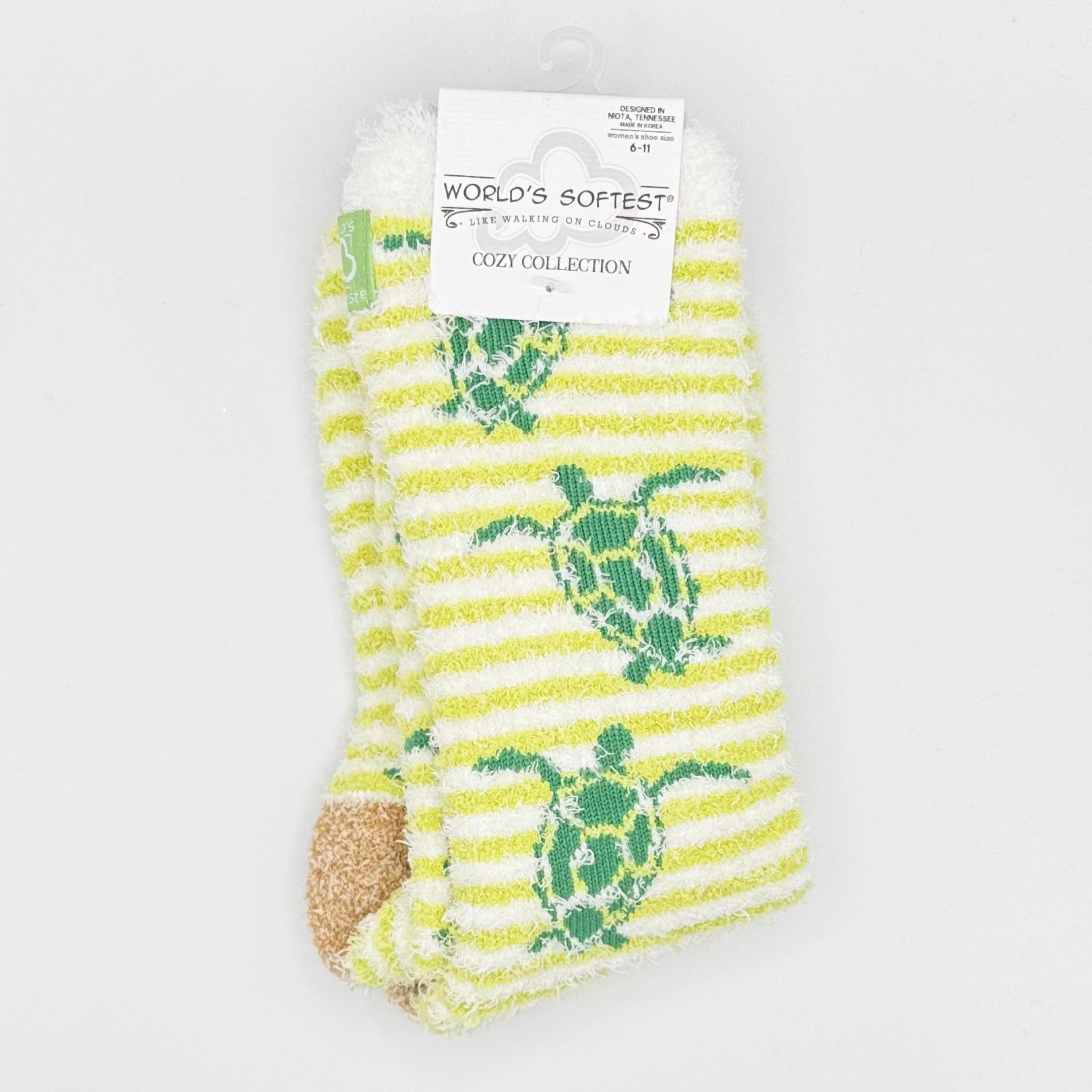 Purchase turtle printed soft socks for mother in law who adores & collects all things turtles, though she didn’t have any of these soft printed socks yet. Once she opened wrapping paper and felt her new turtle socks she exclaimed how excited she was to put them on to keep her feet warm and cozy.