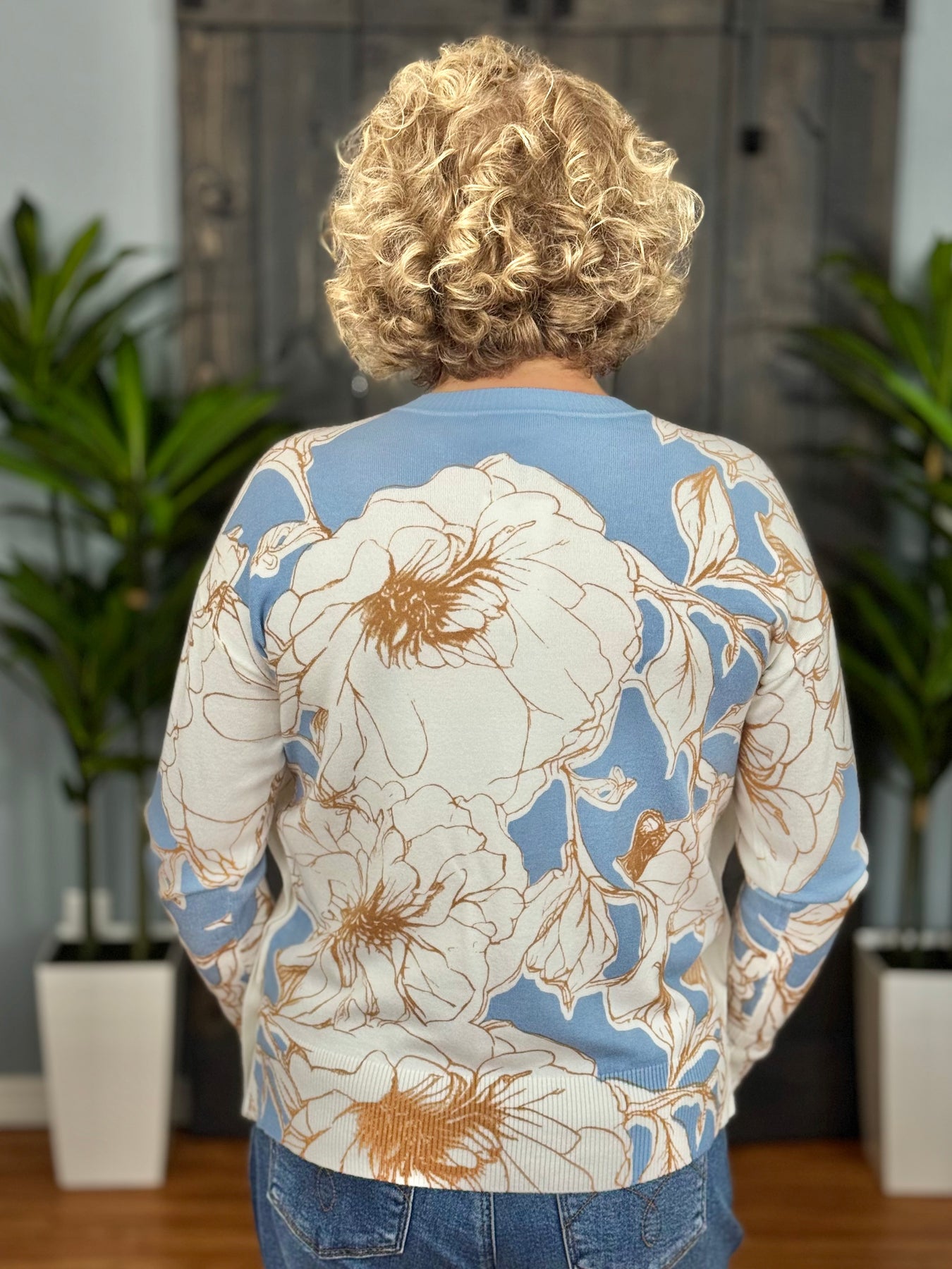 The artistic floral print adds a soft yet striking element, making this piece both versatile and expressive. Whether styled casually with denim and sneakers or dressed up with tailored trousers and boots, this sweater seamlessly transitions from day to night and season to season. Lightweight yet warm enough for cool weather, it’s designed to be the perfect balance of comfort and style—ideal for layering or wearing on its own.