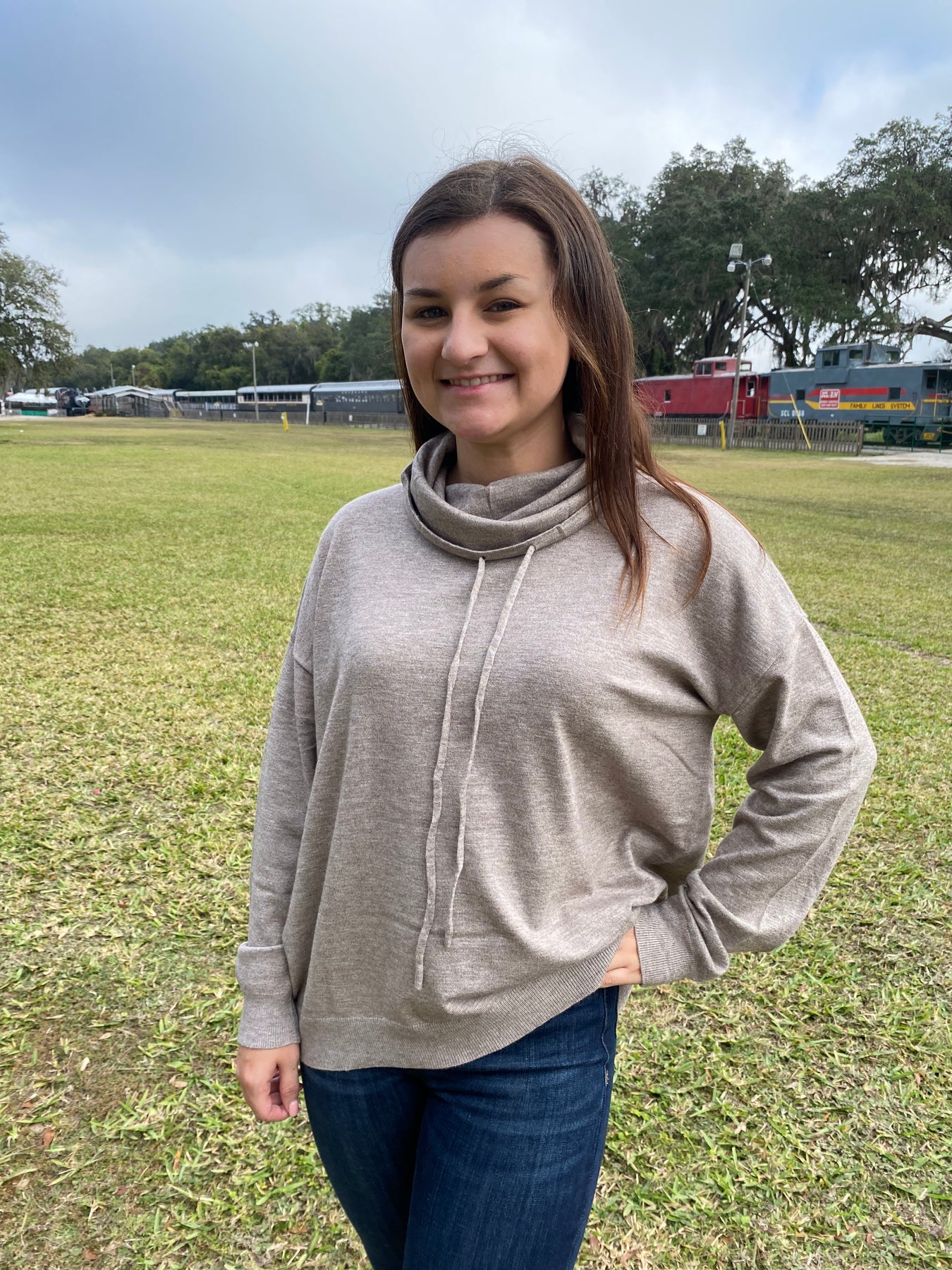 • Cowl Neck With Drawstring