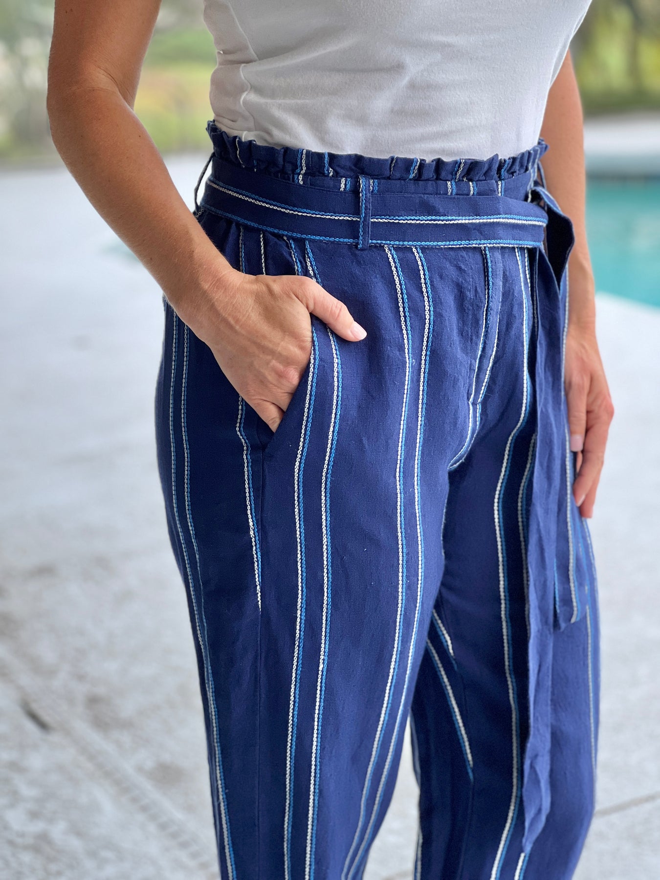 Stay cool and comfortable in The Paper Bag Pants In Beach Stripes By Hatley, perfect for summer days. Crafted from lightweight fabric with an elastic waist for a comfort fit and a removable belt, these easy-to-wear cropped pants are striped with an eye-catching pattern. Style and comfort in one!