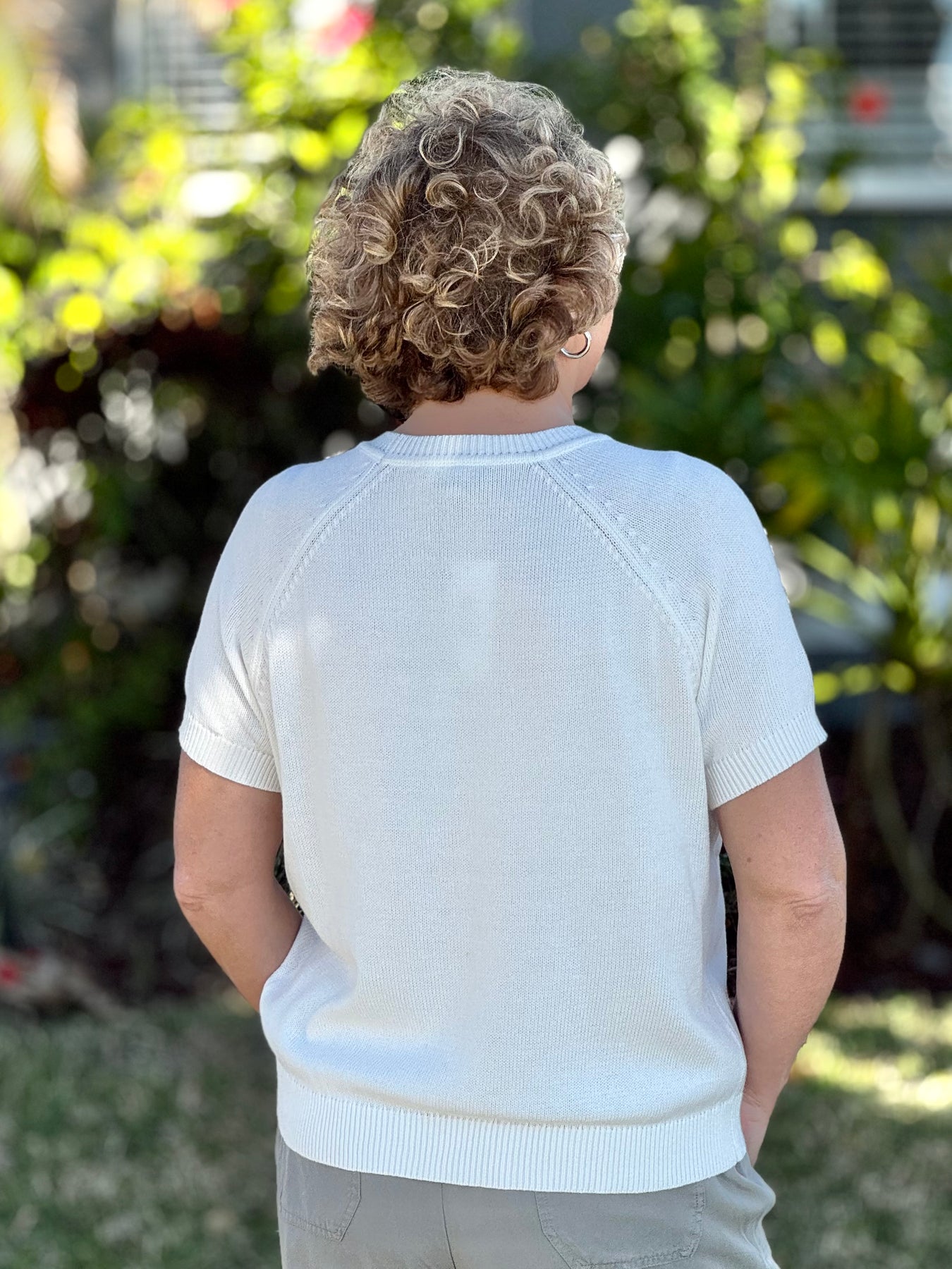 Brighten up your wardrobe with this effortlessly chic knit raglan top that blends playful detail with polished style. Crafted from a soft, lightweight knit, this short sleeve, crew neck silhouette offers a cozy feel without the bulk, making it perfect for layering or wearing on its own. The crisp white body keeps the look clean and classic, while the placed jacquard lemon at the front center adds a fresh, eye-catching touch that feels fun yet refined.