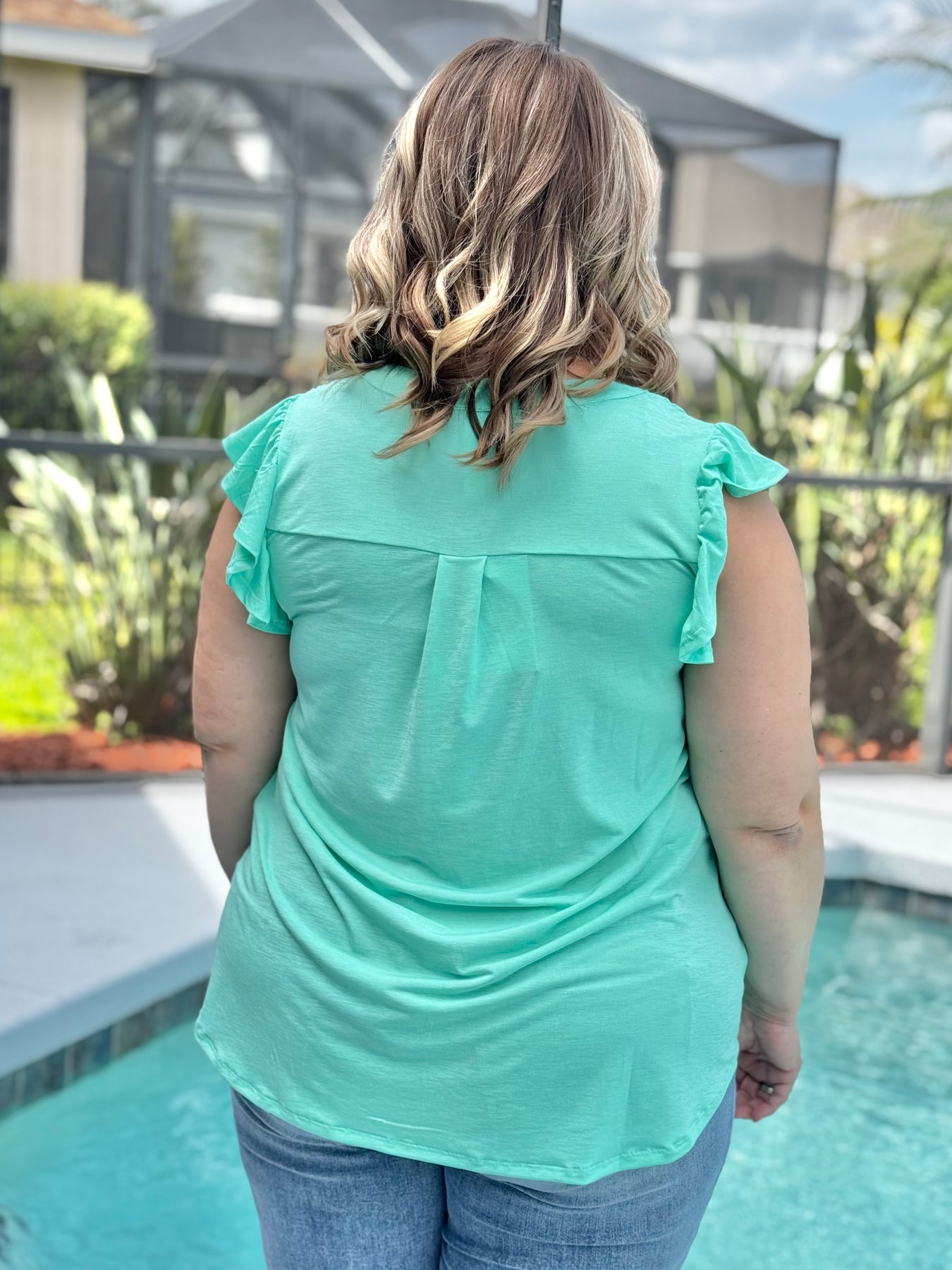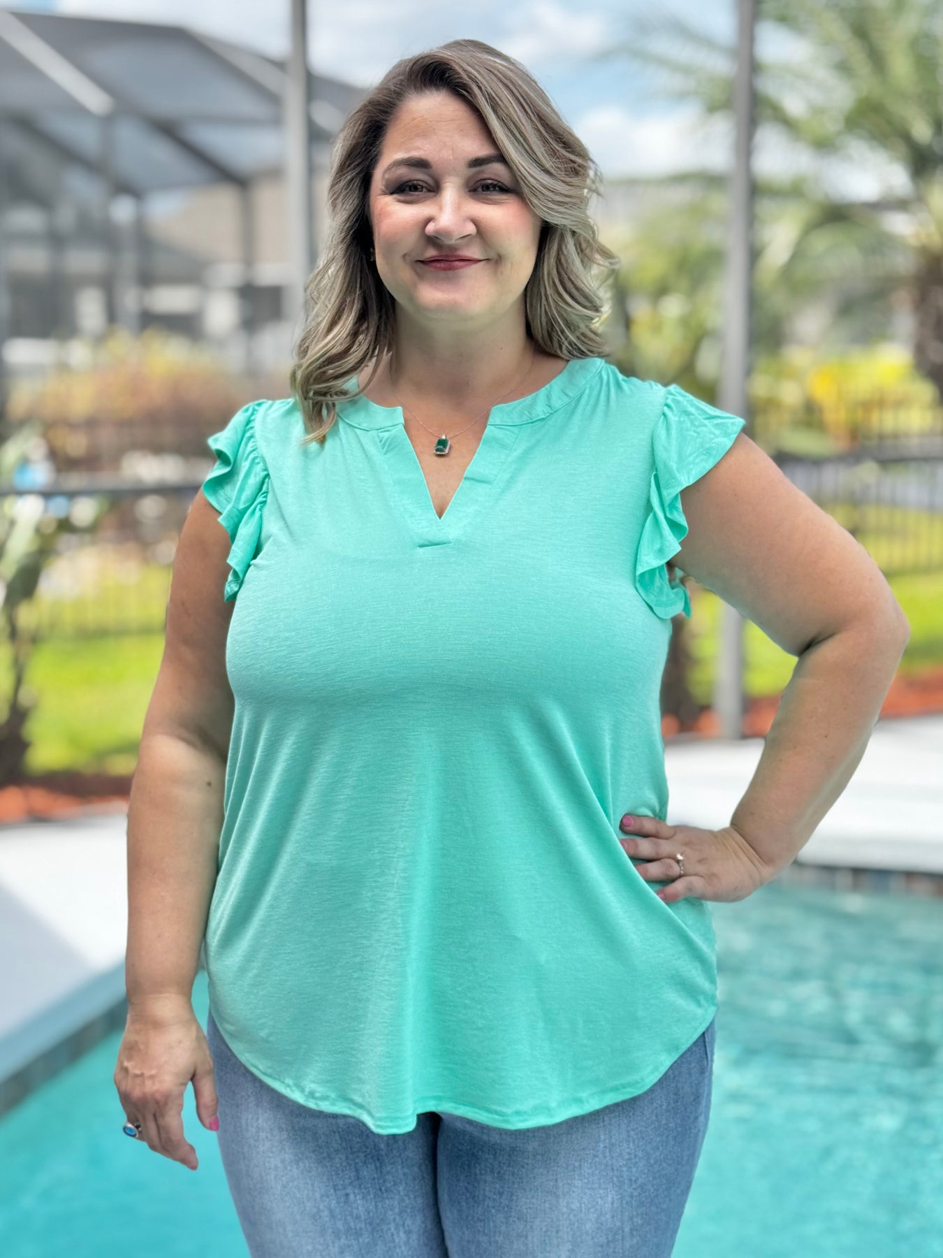 The Solid Lizzy Flutter Sleeve Top by Dear Scarlett - Mint