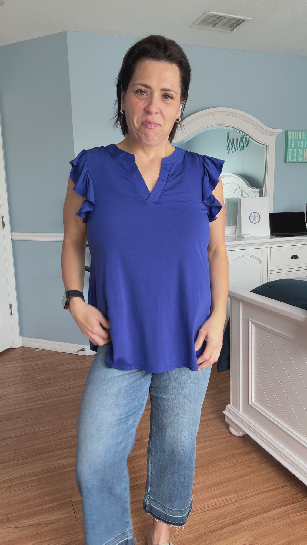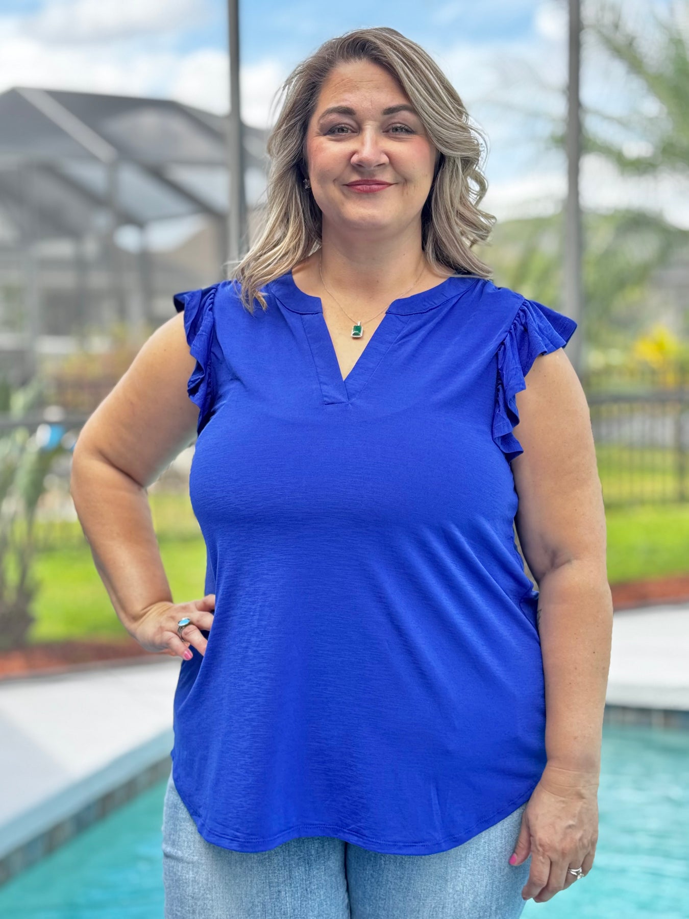 The Solid Lizzy Flutter Sleeve Top by Dear Scarlett - Royal