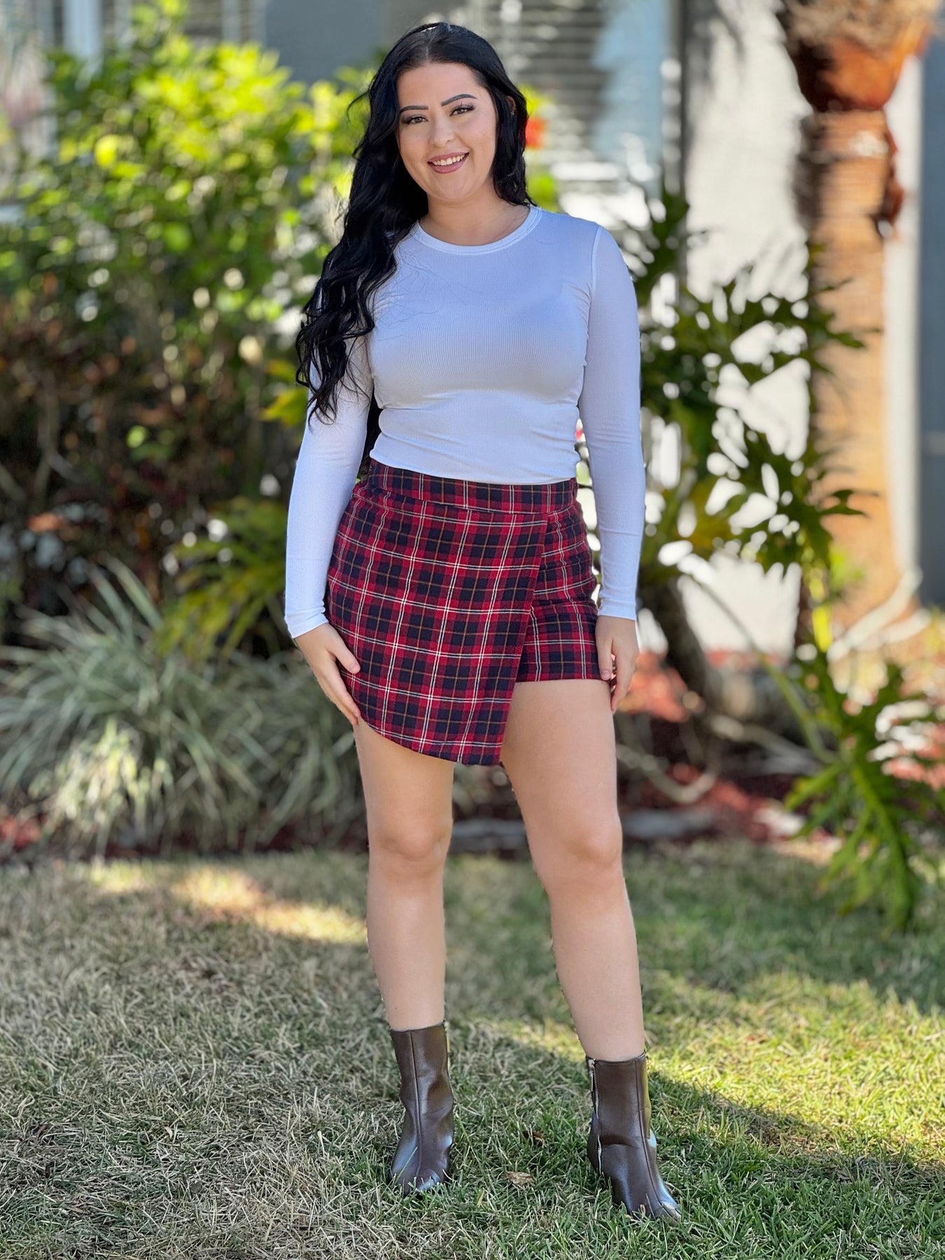 Add a touch of preppy charm to your everyday style with this effortlessly chic plaid skort. Designed with a relaxed fit for easy movement and all-day comfort, it combines the timeless look of a skirt with the practicality of shorts underneath. The asymmetrical front wrap gives it a flattering, feminine shape, while the classic plaid print brings that polished, boutique-inspired feel you’ll love.