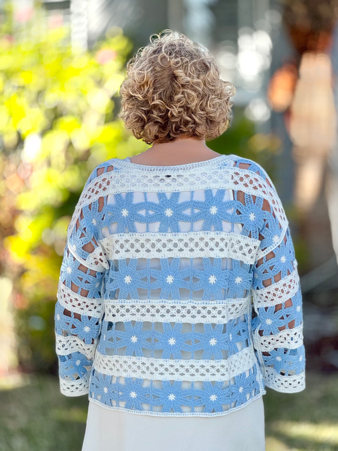 Add a soft, feminine touch to your wardrobe with this must-have crochet top that brings effortless charm to any outfit. Designed with a flattering boat neckline and flowy bell sleeves, this piece features an open floral crochet pattern that adds beautiful texture, dimension, and boutique-worthy detail. The airy construction gives it a light, breathable feel, making it comfortable to wear while still delivering standout style.