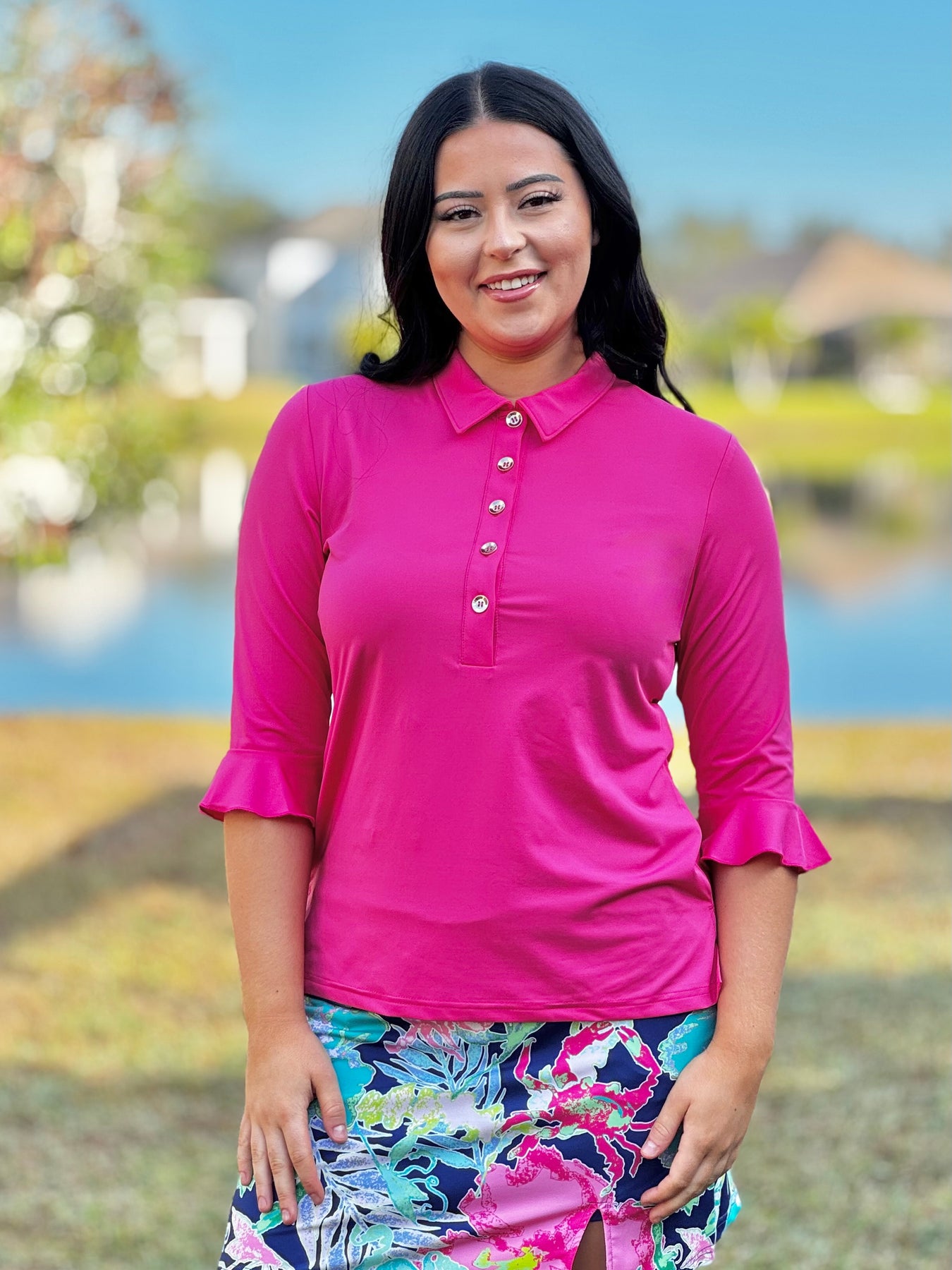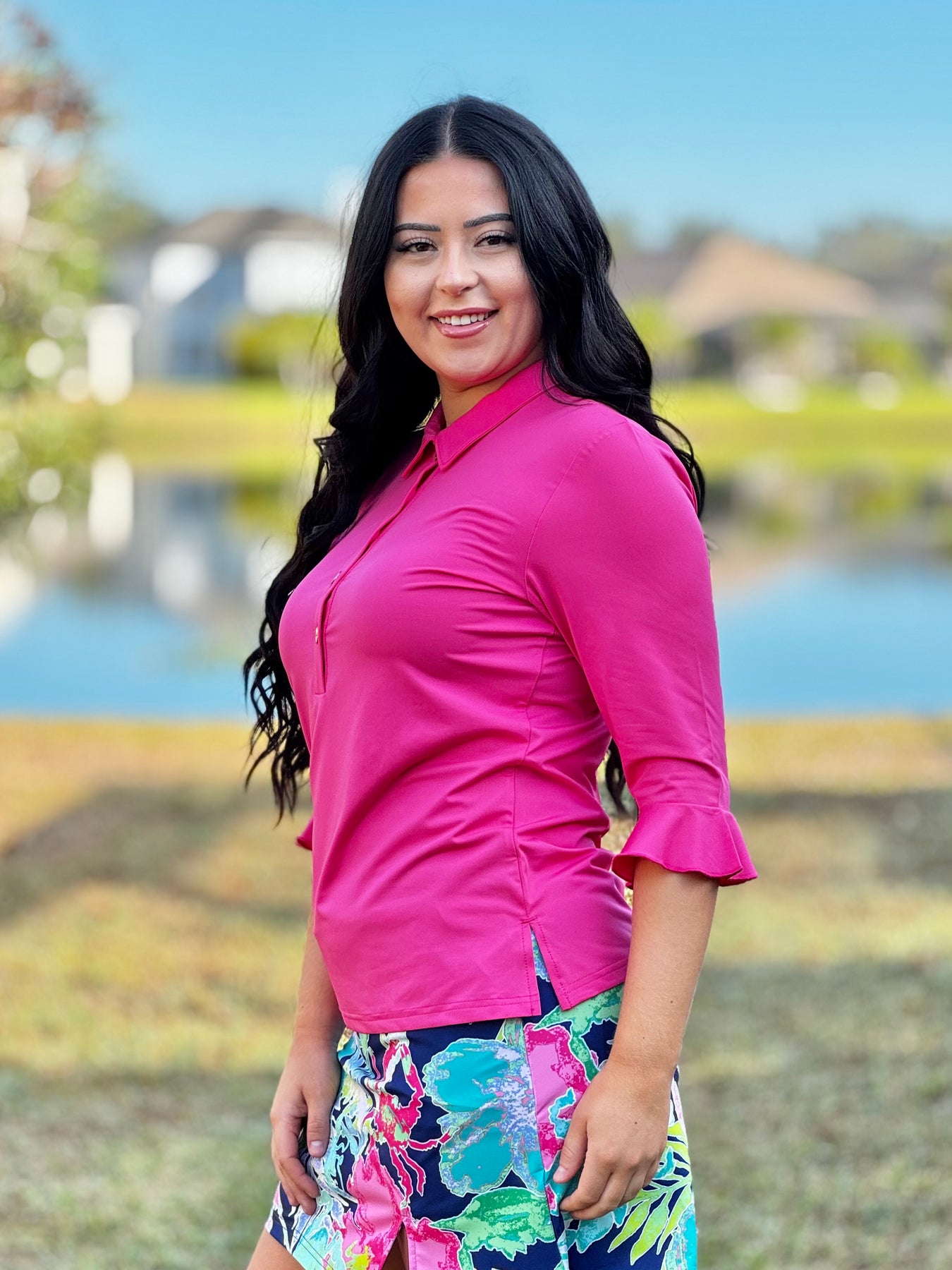 Mira Flounce Sleeve Top By Ana Clare - Hot Pink