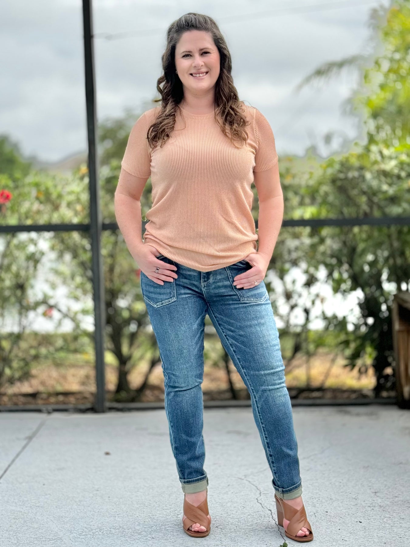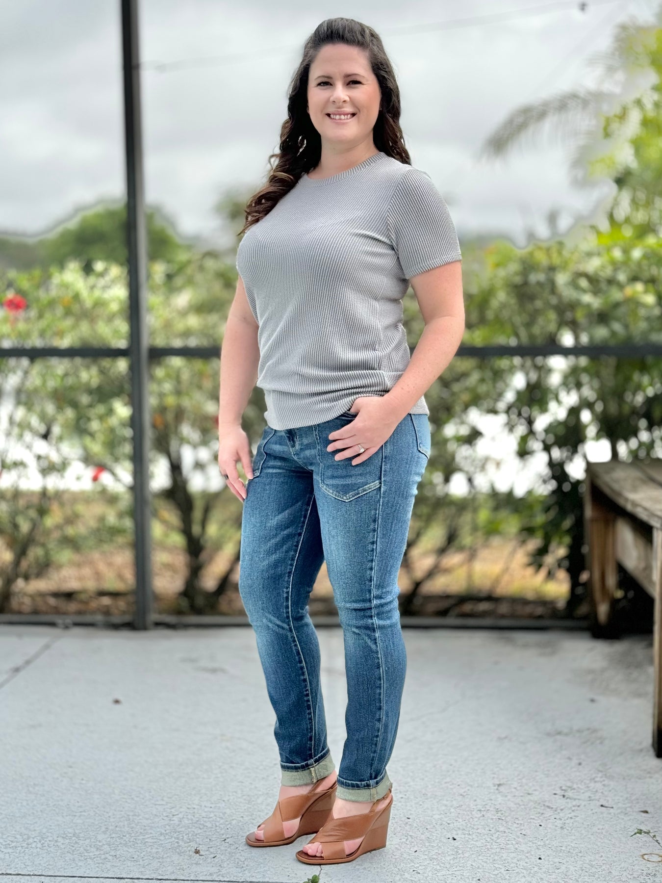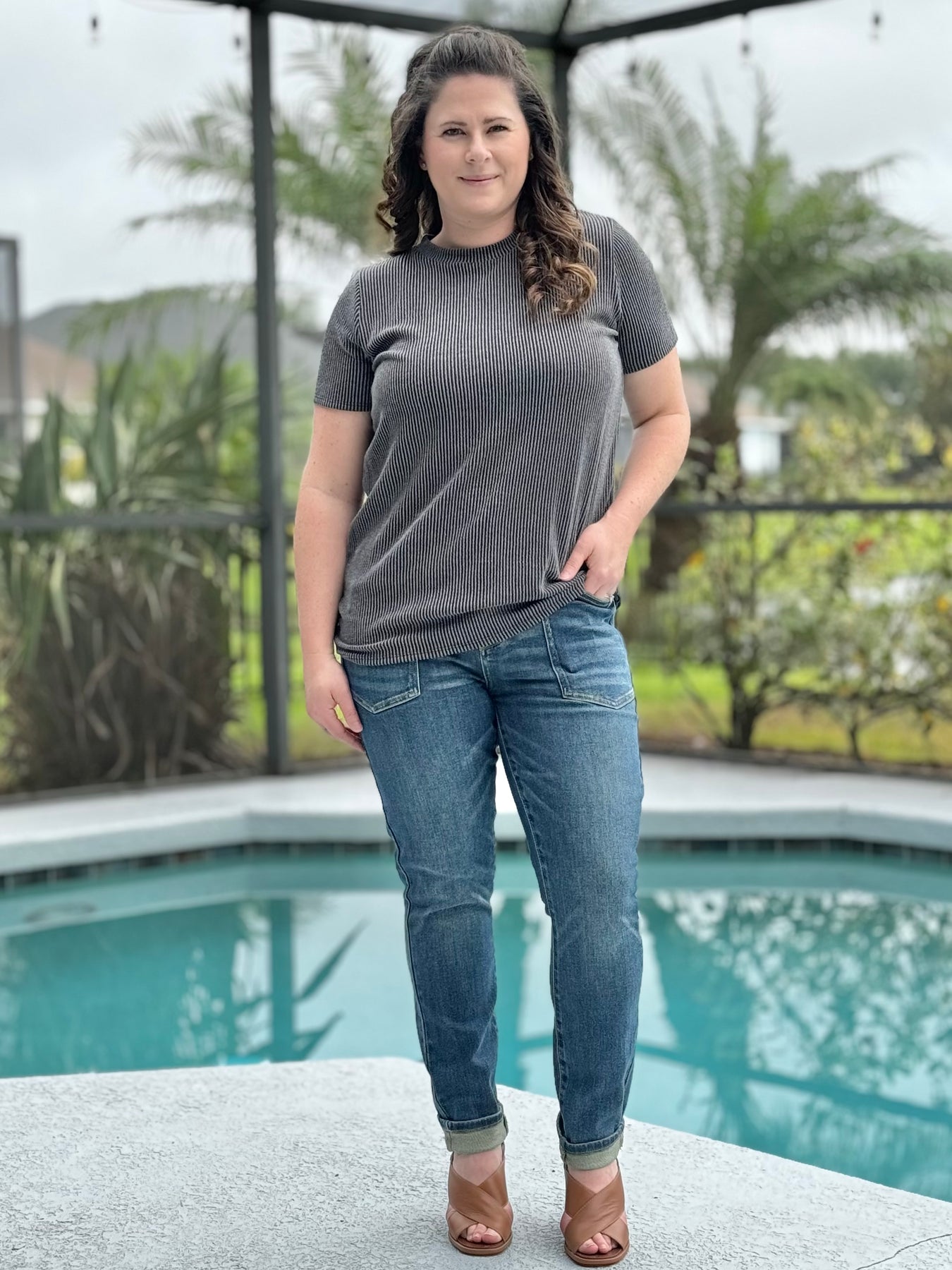 Indulge in the ultimate comfort and style with our Radiantly Ribbed Crew Neck Tee! This must-have top features a round neck and ribbed detailing, offering the perfect combination of form and function. Elevate your everyday look with this effortlessly chic piece that will keep you feeling confident and comfortable all day long.
