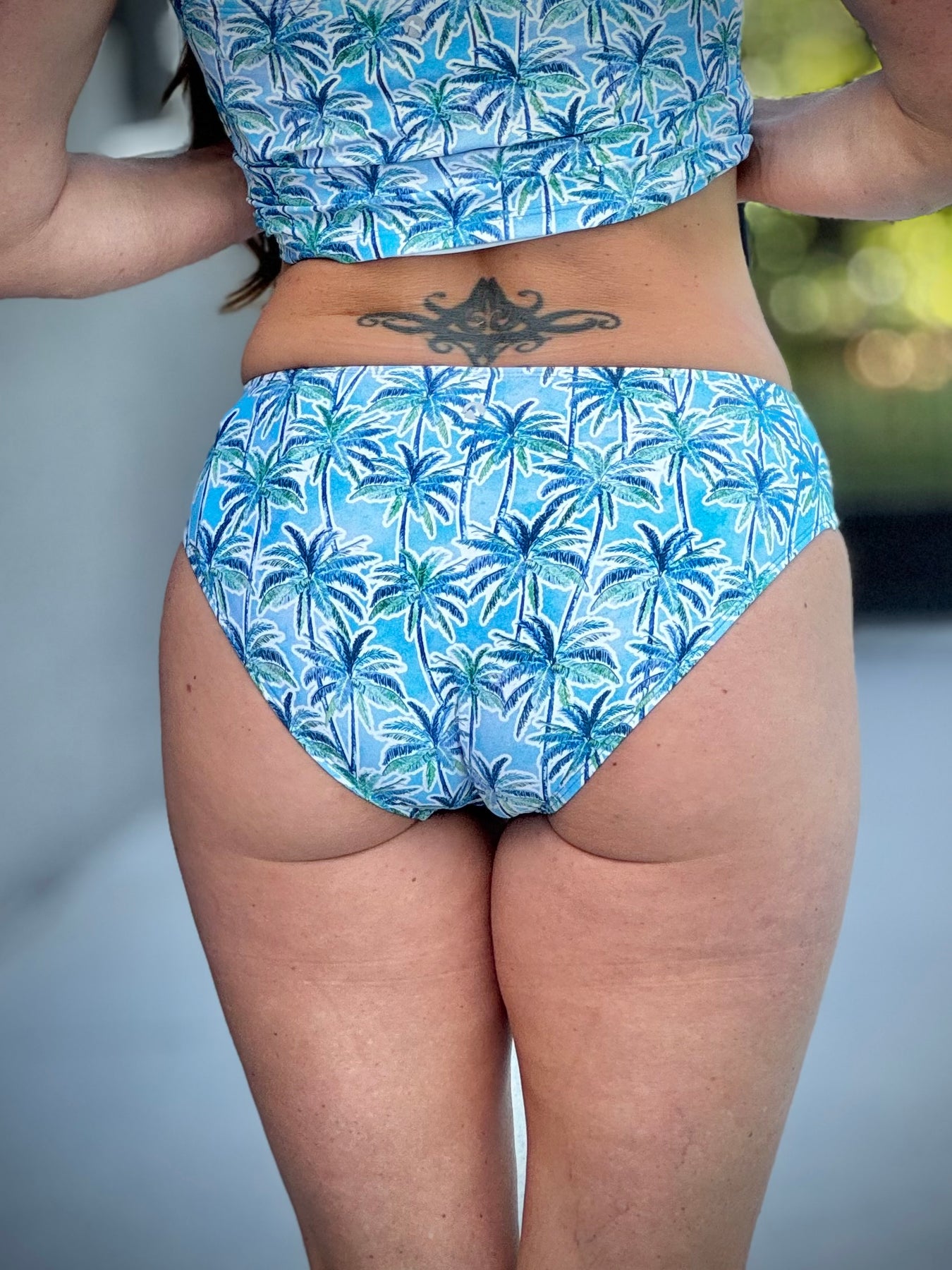 Featuring a comfortable midrise fit that sits perfectly at the hips, this swimwear provides moderate seat coverage and a secure feel you can count on. Whether you’re swimming laps, playing beach volleyball, or chasing little ones along the shore, it stays in place during movement for worry-free wear. The soothing tropical palm print from the Oasis collection adds a serene, vacation-ready vibe, making it easy to mix and match with coordinating tops or breezy cover-ups. Stylish, functional, and made to move—this is swimwear you’ll reach for all season long.